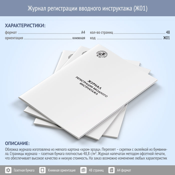 Журнал регистрации вводного инструктажа (48 стр., Ж01) в Хотьково купить