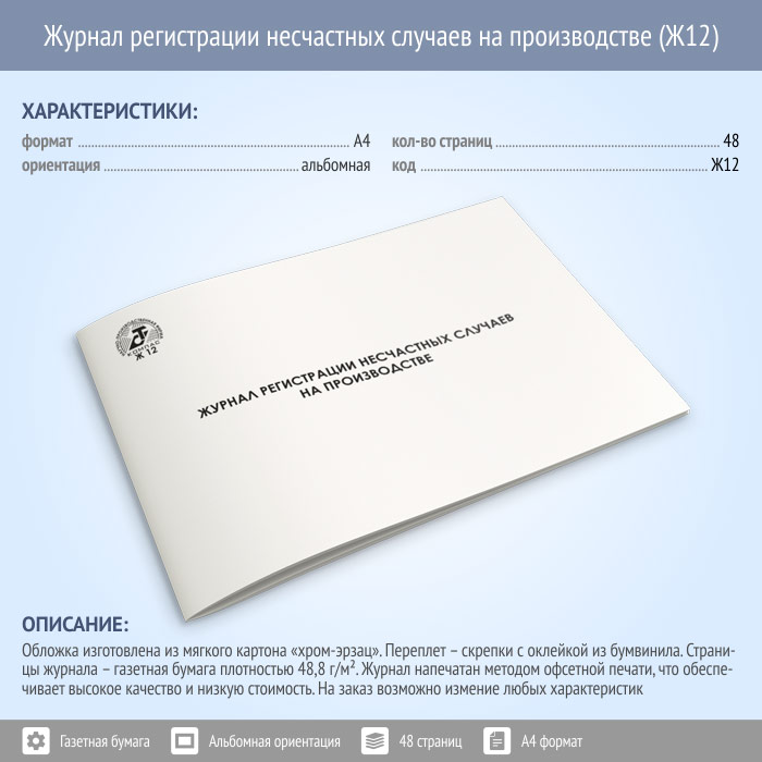 Журнал регистрации несчастных случаев на производстве (48 стр., Ж12) в Хотьково купить