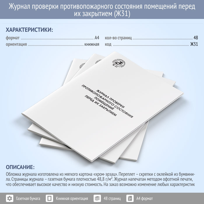 Журнал проверки противопожарного состояния помещений перед их закрытием (48 стр., Ж31) в Хотьково купить