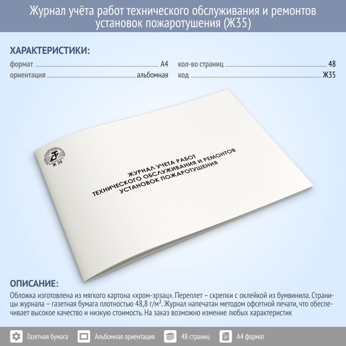 Журнал учета работ технического обслуживания и ремонтов установок пожаротушения (48 стр., Ж35) в Хотьково купить