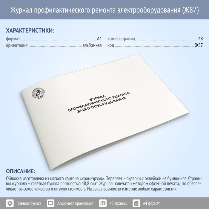 Журнал профилактического ремонта электрооборудования (48 стр., Ж87) в Хотьково купить