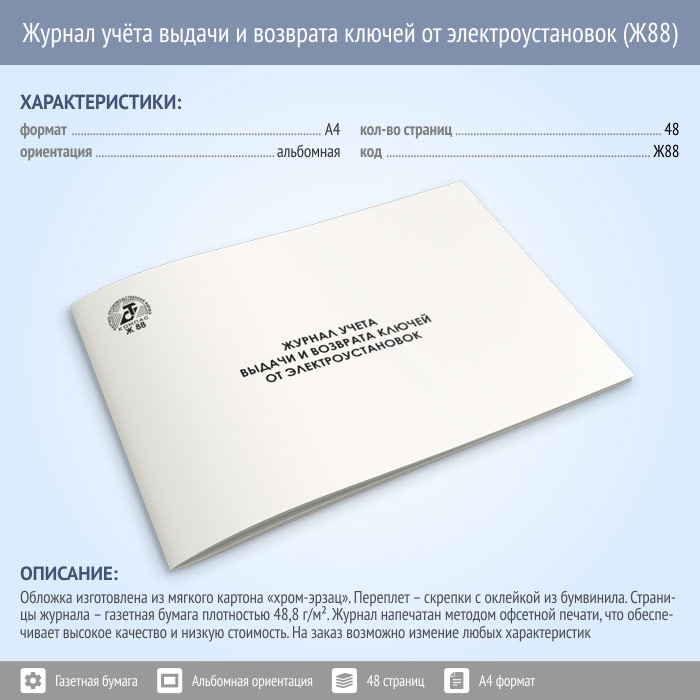 Журнал учета выдачи и возврата ключей от электроустановок (48 стр., Ж88) в Хотьково купить