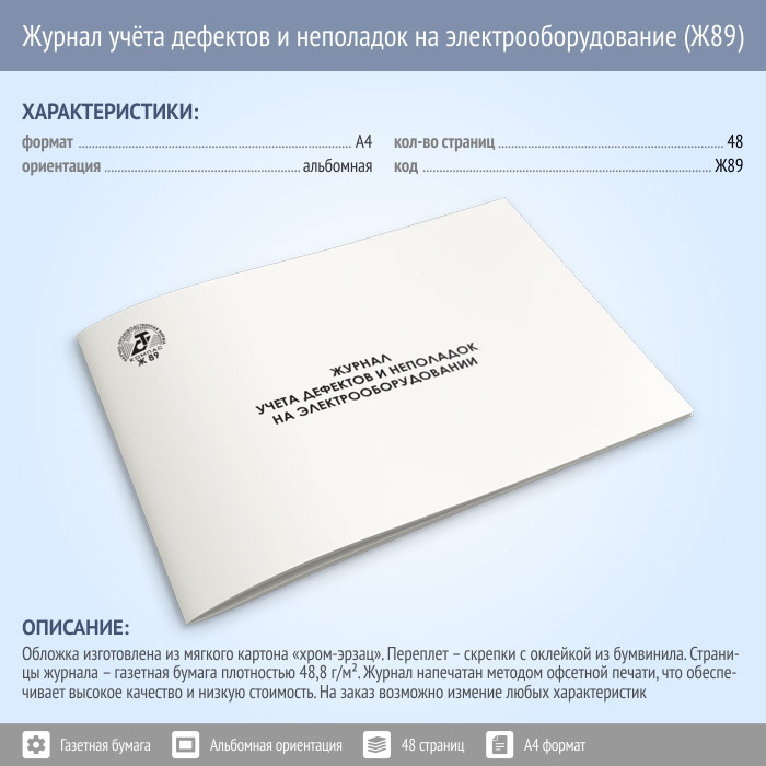 Журнал учета дефектов и неполадок электрооборудования (48 стр., Ж89) в Хотьково купить