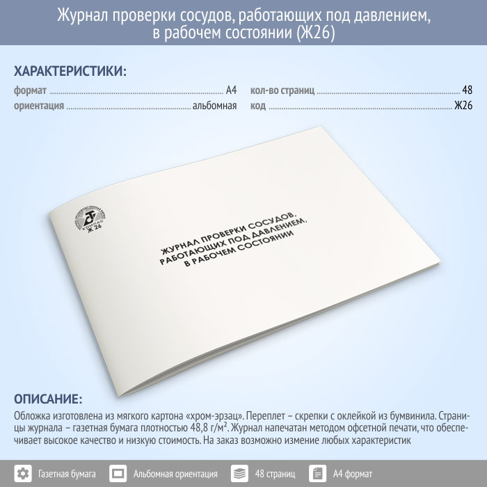 Журнал проверки сосудов, работающих под давлением в рабочем состоянии (48 стр., Ж26) в Хотьково купить
