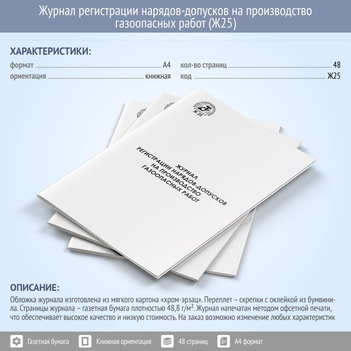 Журнал регистрации нарядов-допусков на производство газоопасных работ (48 стр., Ж25) в Хотьково купить