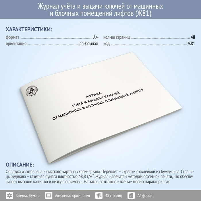 Журнал учета и выдачи ключей от машинных и блочных помещений лифтов (48 стр., Ж81) в Хотьково купить
