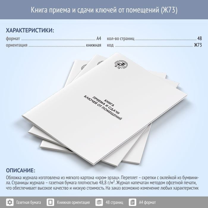 Книга приема и сдачи ключей от помещений (48 стр., Ж73) в Хотьково купить