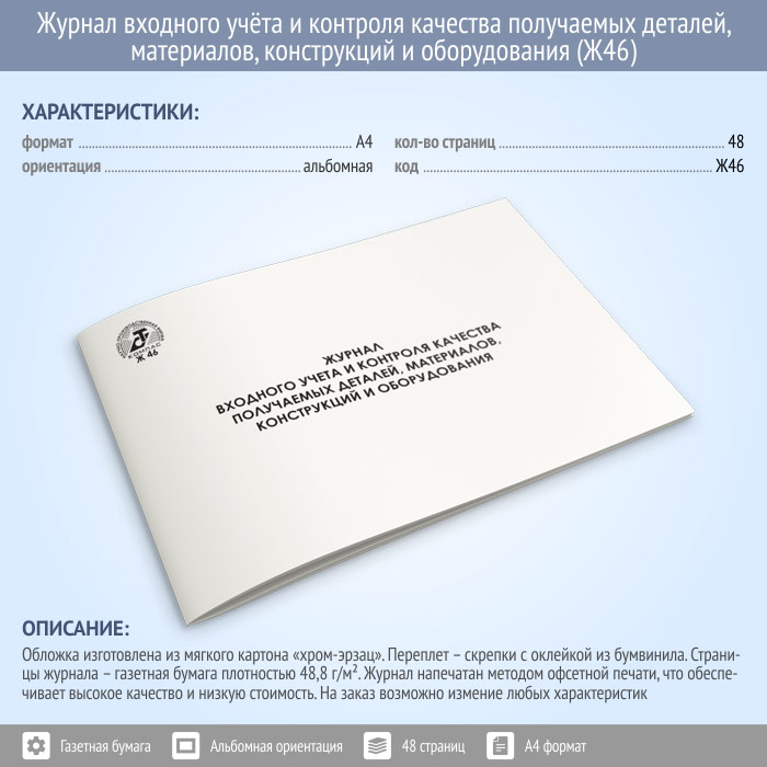 Журнал входного учета и контроля качества получаемых деталей, материалов, конструкций и оборудования (48 стр., Ж46) в Хотьково купить