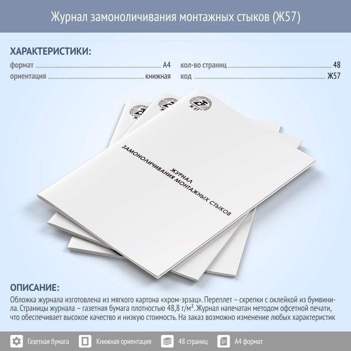 Журнал замоноличивания монтажных стыков (48 стр., Ж57) в Хотьково купить
