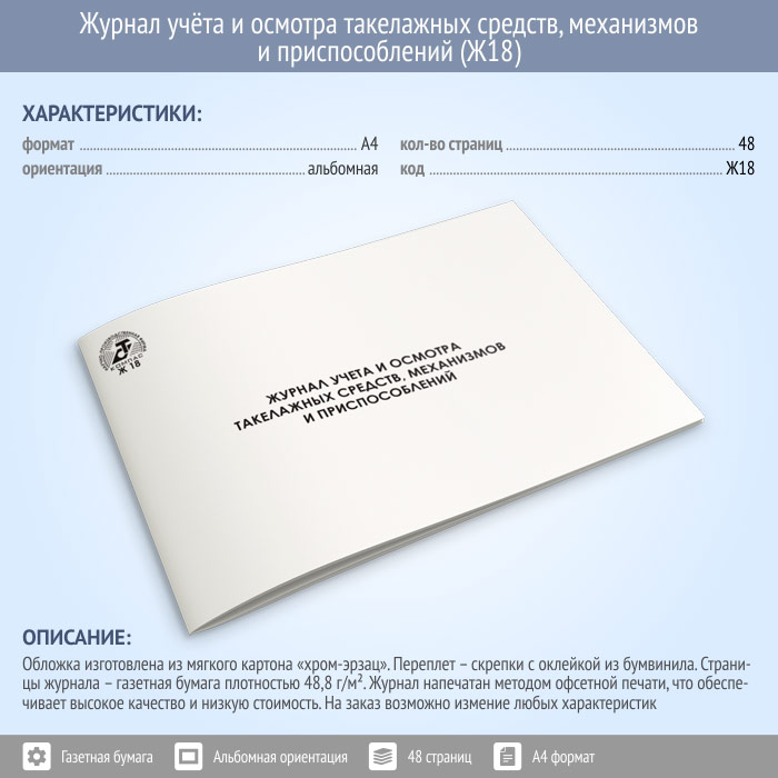 Журнал учета и осмотра такелажных средств, механизмов и приспособлений (48 стр., Ж18) в Хотьково купить