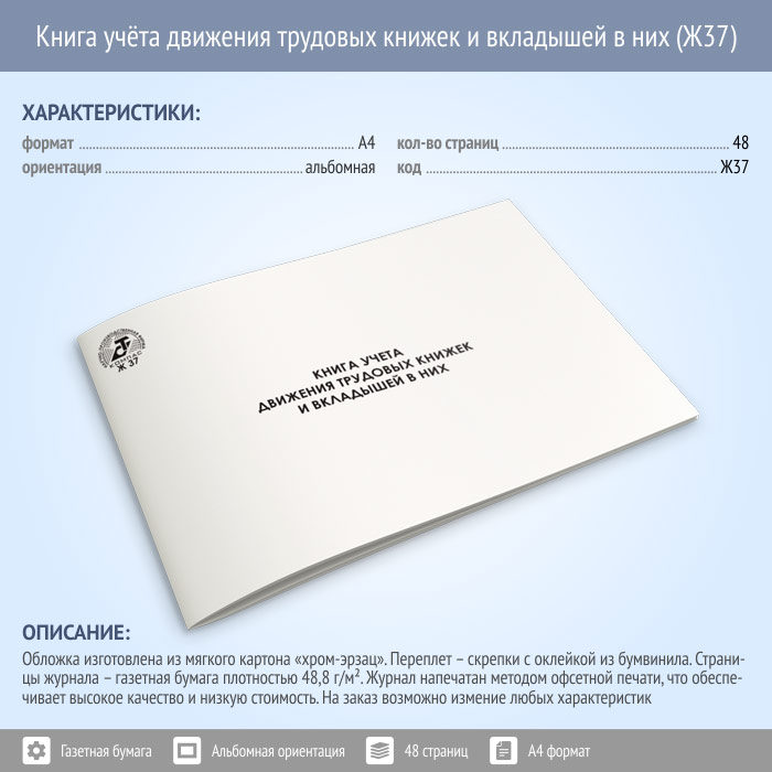 Книга учета движения трудовых книжек и вкладышей в них (48 стр., Ж37) в Хотьково купить