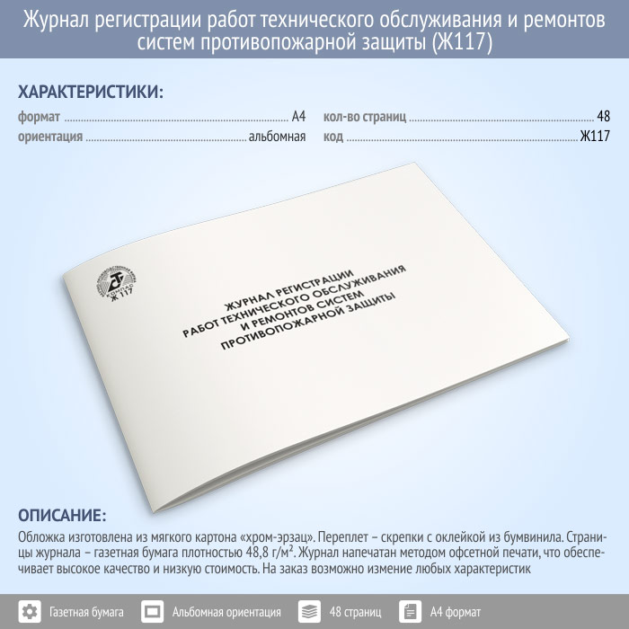 Журнал регистрации работ технического обслуживания и ремонтов систем противопожарной защиты (48 стр., Ж117) в Хотьково купить