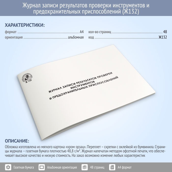 Журнал записи результатов проверки инструментов и предохранительных приспособлений (48 стр., Ж132) в Хотьково купить
