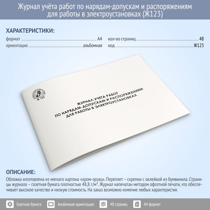 Журнал учета работ по нарядам-допускам и распоряжениям для работы в электроустановках (48 стр., Ж123) в Хотьково купить