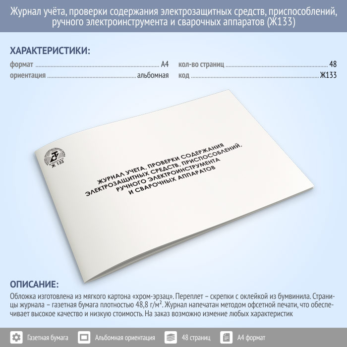 Журнал учета проверки и содержания электрозащитных средств, приспособлений, ручного электроинструмента и сварочных аппаратов (48 стр., Ж133) в Хотьково купить