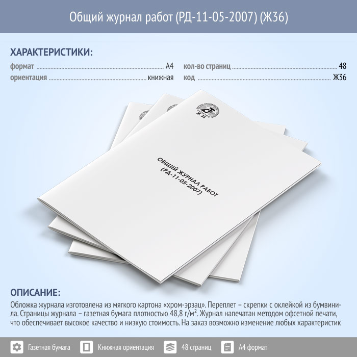 Общий журнал работ (РД-11-05-2007, 48 стр., Ж36) в Хотьково купить