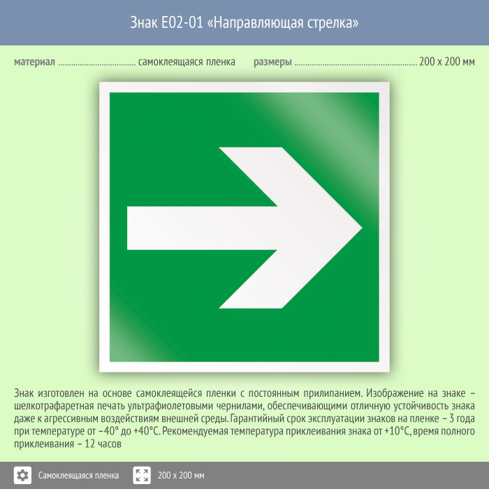 Знак E02-01 «Направляющая стрелка» (фотолюм. пластик, 200х200 мм)