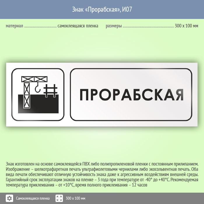 Знак «Прорабская», И07 (пластик, 300х100 мм)