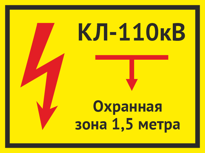 Табличка «КЛ 110 кВ, охранная зона 1.5 метра», OZK-08 (пластик 2 мм, 400х300 мм) в Хотьково купить