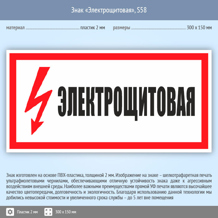 Знак (плакат) «Электрощитовая», S58 (пластик, 300х150 мм) в Хотьково купить