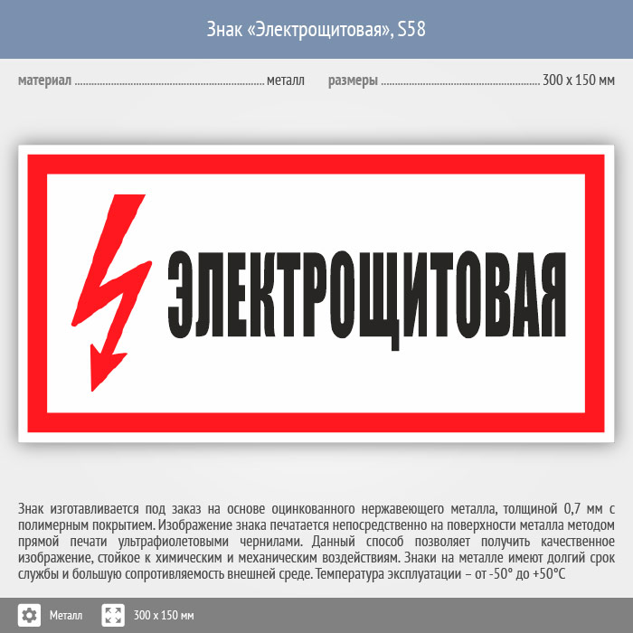 Знак (плакат) «Электрощитовая», S58 (металл, 300х150 мм) в Хотьково купить