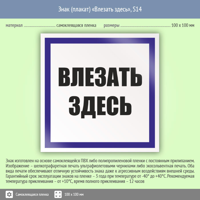 Знак (плакат) «Влезать здесь», S14 (пленка, 100х100 мм) в Хотьково купить
