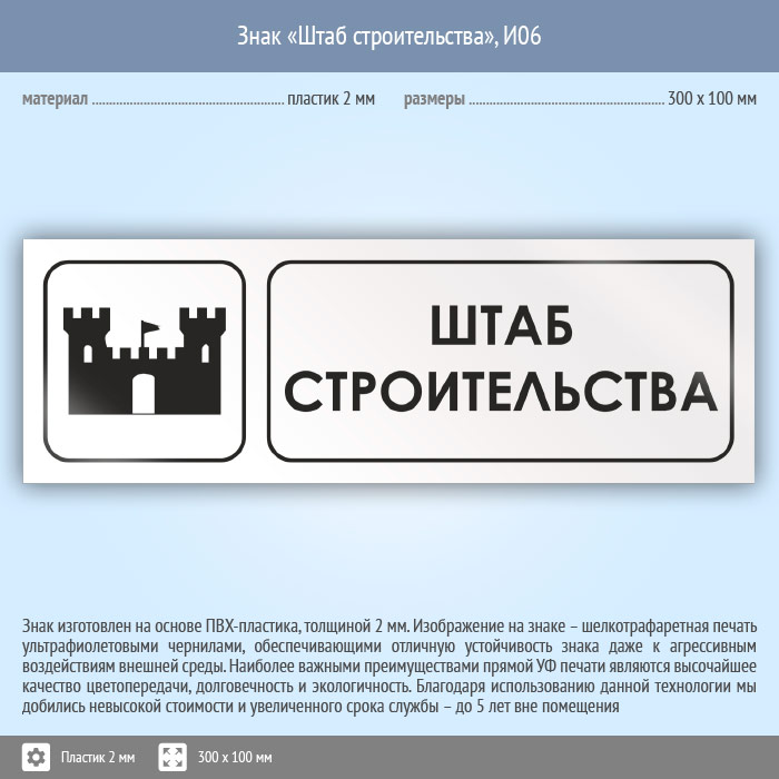 Знак «Штаб строительства», И06 (пластик, 300х100 мм) в Хотьково купить