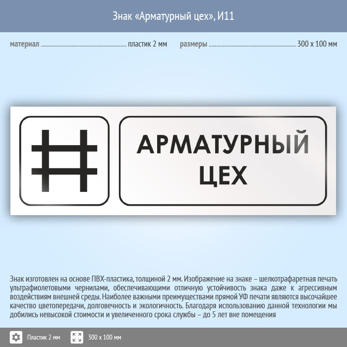 Знак «Арматурный цех», И11 (пластик, 300х100 мм) в Хотьково купить