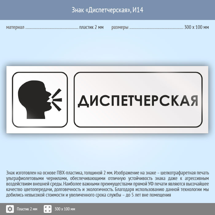 Знак «Диспетчерская», И14 (пластик, 300х100 мм) в Хотьково купить