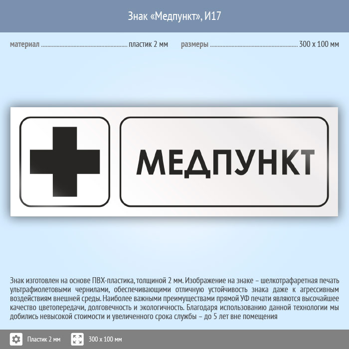 Знак «Медпункт», И17 (пластик, 300х100 мм) в Хотьково купить
