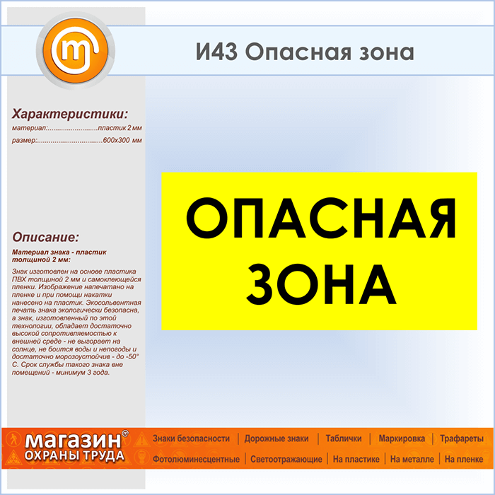 Знак «Опасная зона», И43 (пластик, 600х300 мм) в Хотьково купить