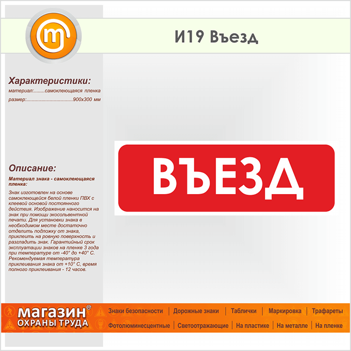 Знак «Въезд», И19 (пленка, 900х300 мм) в Хотьково купить