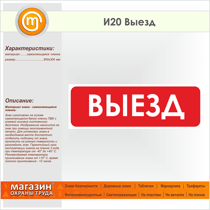 Знак «Выезд», И20 (пленка, 900х300 мм) в Хотьково купить