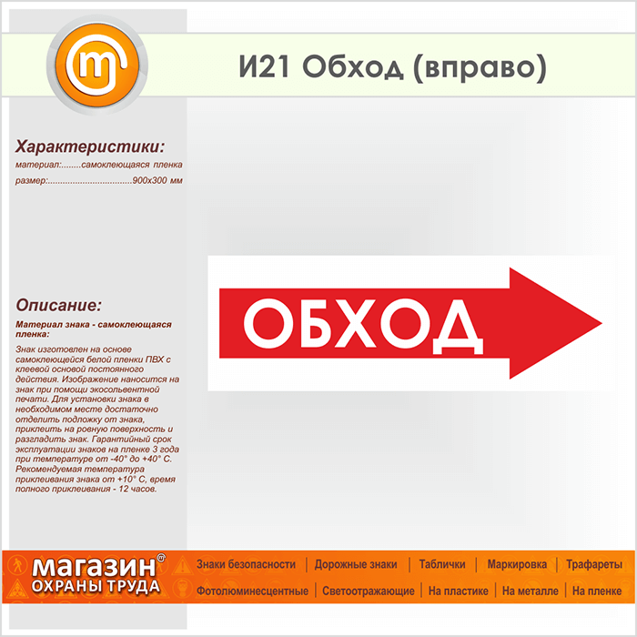 Знак «Обход (вправо)», И21 (пленка, 900х300 мм) в Хотьково купить