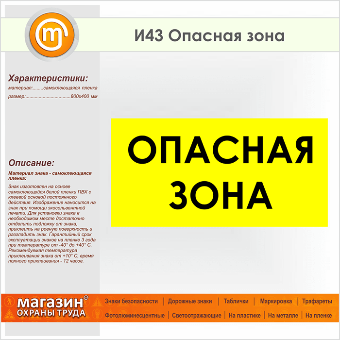 Знак «Опасная зона», И43 (пленка, 800х400 мм) в Хотьково купить