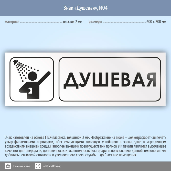 Знак «Душевая», И04 (пластик, 600х200 мм) в Хотьково купить
