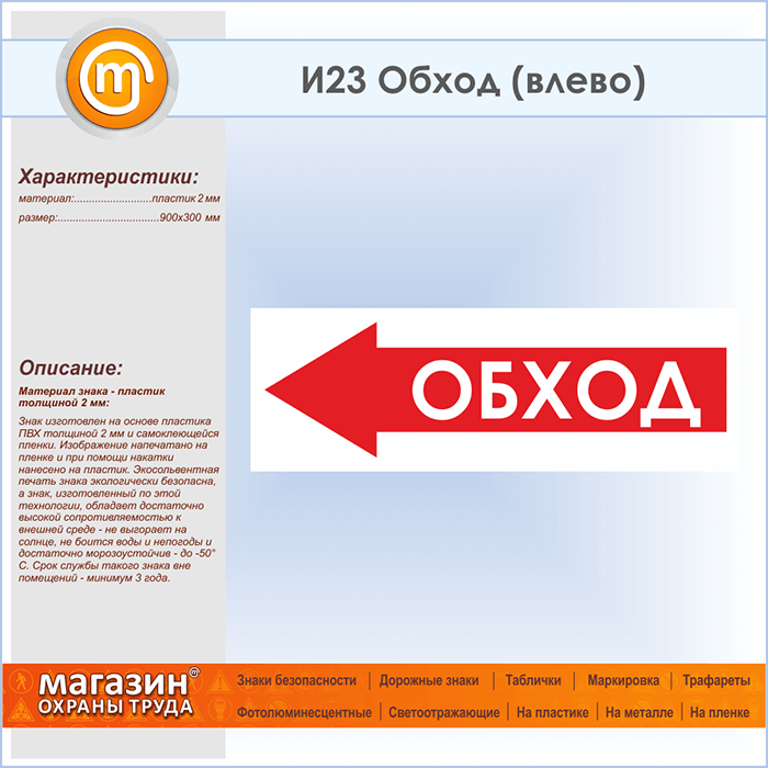 Знак «Обход (влево)», И23 (пластик, 900х300 мм) в Хотьково купить