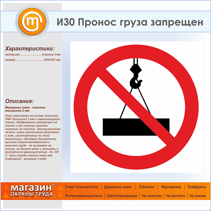 Знак «Пронос груза запрещен», И30 (пластик, 500х500 мм) в Хотьково купить