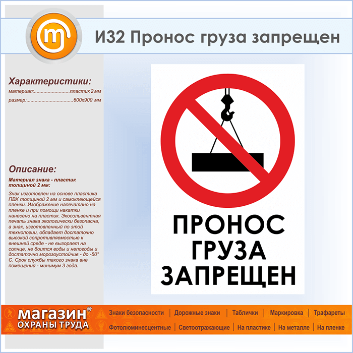 Знак «Пронос груза запрещен», И32 (пластик, 600х900 мм) в Хотьково купить