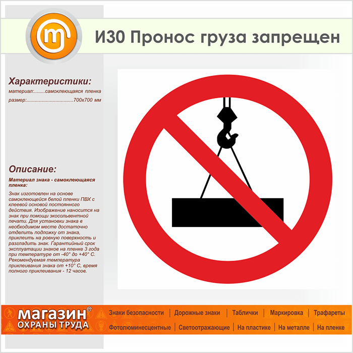 Знак «Пронос груза запрещен», И30 (пленка, 700х700 мм) в Хотьково купить