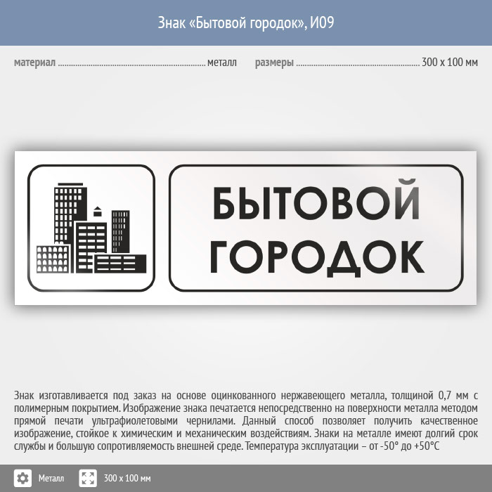 Знак «Бытовой городок», И09 (металл, 300х100 мм) в Хотьково купить