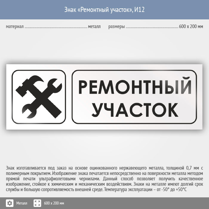 Знак «Ремонтный участок», И12 (металл, 600х200 мм) в Хотьково купить