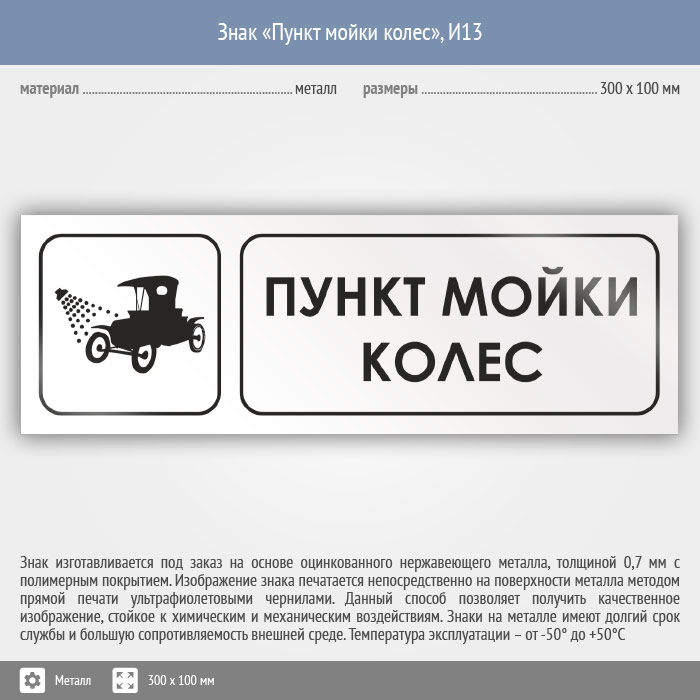 Знак «Пункт мойки колес», И13 (металл, 300х100 мм) в Хотьково купить
