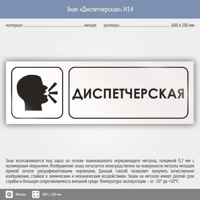 Знак «Диспетчерская», И14 (металл, 600х200 мм) в Хотьково купить