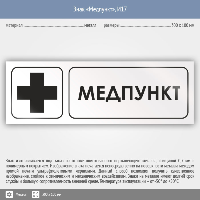 Знак «Медпункт», И17 (металл, 300х100 мм) в Хотьково купить