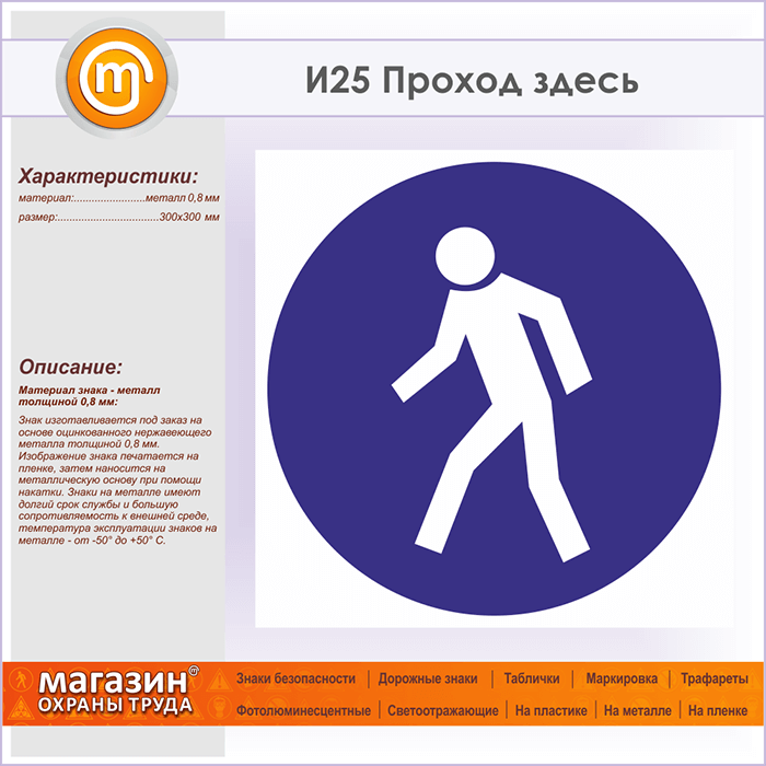 Знак «Проход здесь», И25 (металл, 300х300 мм) в Хотьково купить
