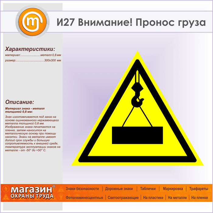 Знак «Внимание! Пронос груза», И27 (металл, сторона 300 мм) в Хотьково купить