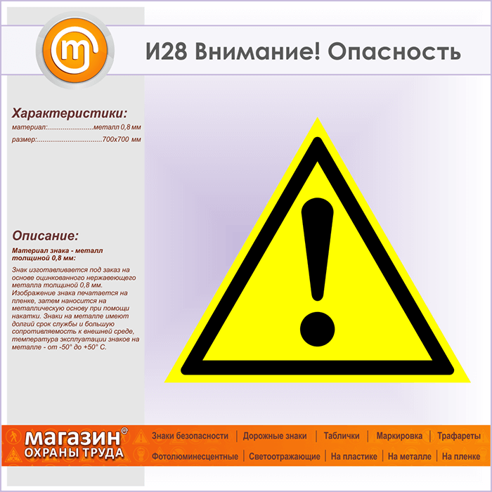 Знак «Внимание! Опасность», И28 (металл, сторона 700 мм) в Хотьково купить