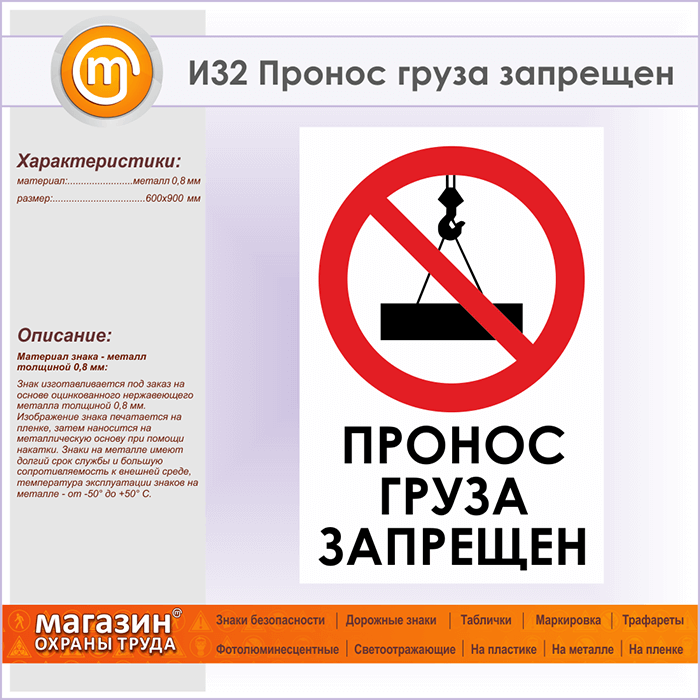 Знак «Пронос груза запрещен», И32 (металл, 600х900 мм) в Хотьково купить