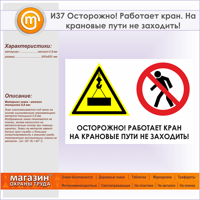 Знак «Осторожно! Работает кран. На крановые пути не заходить!», И37 (металл, 900х600 мм) в Хотьково купить
